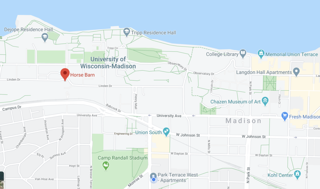 The Horse Barn is located on the West side of the campus of University of Wisconsin-Madison and is centered within the university’s agricultural campus.