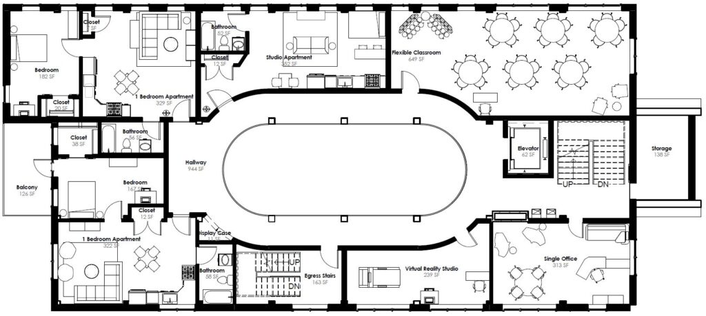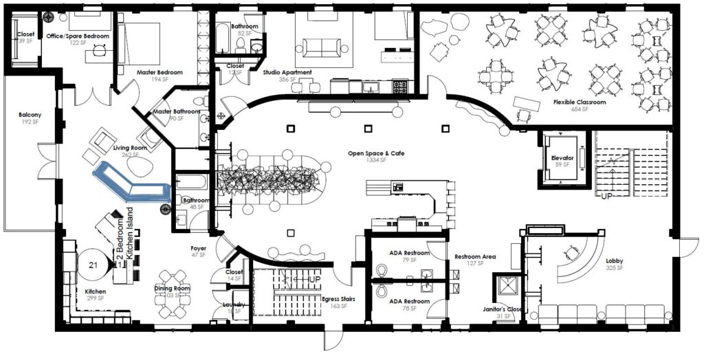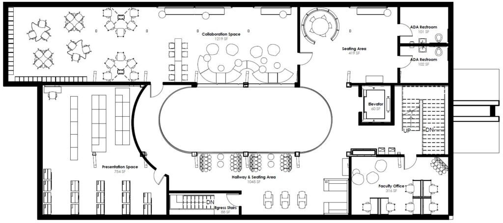 To create a space that emulates a feeling of belonging while fostering creativity and innovation. We will modernize the facility to meet the needs of residents and visitors while preserving the original elements of the building to maintain its historic beauty and integrity. ADA accessible elements, flexible classrooms, and a makerspace will be used to achieve this vision.