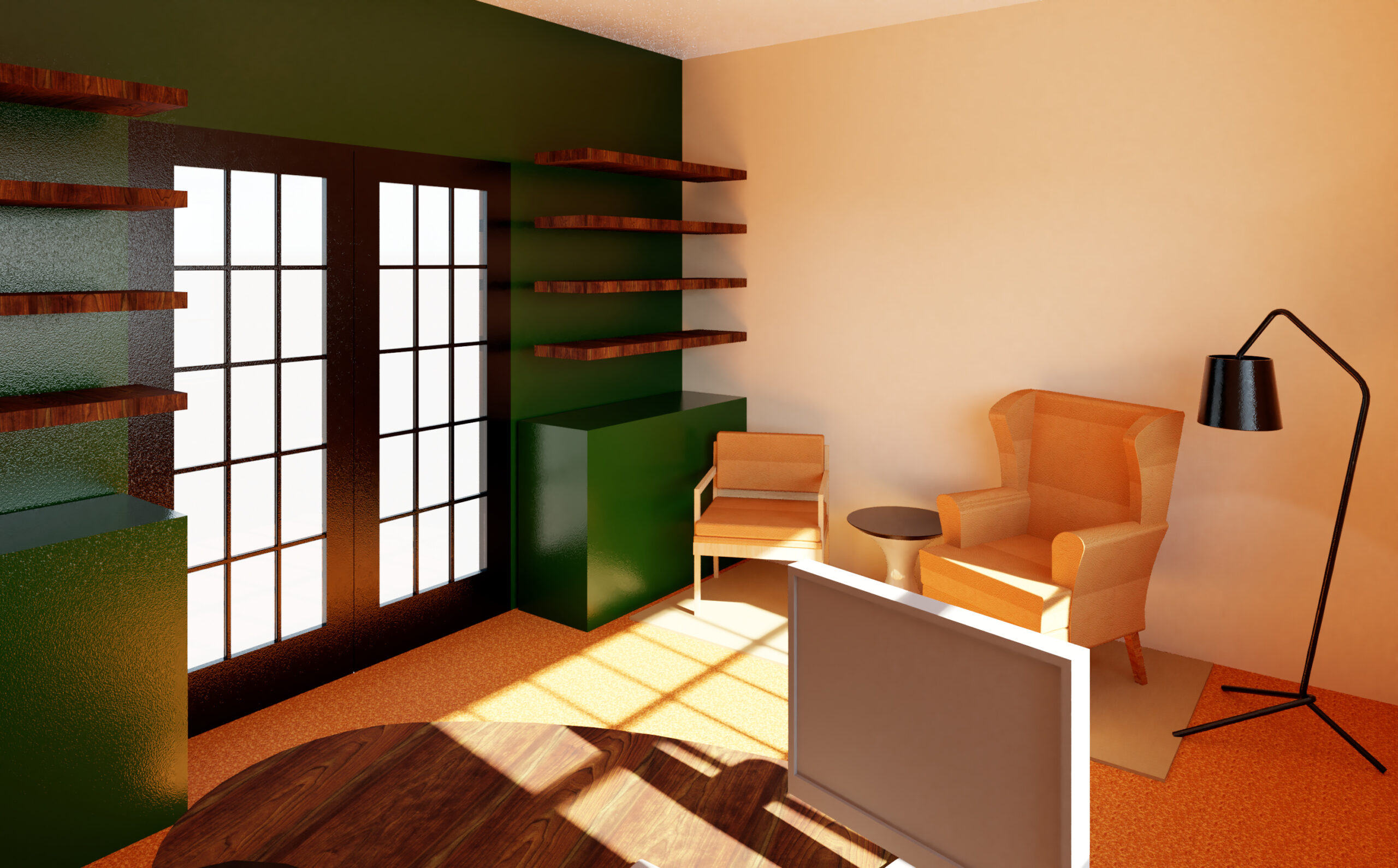 -Floating, live wood edge shelves